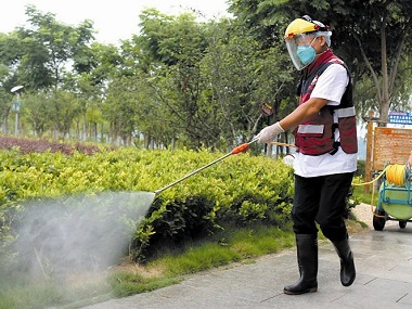 广州消杀四害中心在番禺区大夫山森林公园进行杀虫灭蚊消杀工作,预防蚊虫叮咬传播疾病。