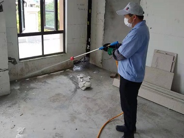 再次,对室内地基适宜白蚁生存的部位,亦采取相应预防药剂喷洒处理,使白蚁无法生存。卫生间、厨房等经常受潮的部位进行重点施药。